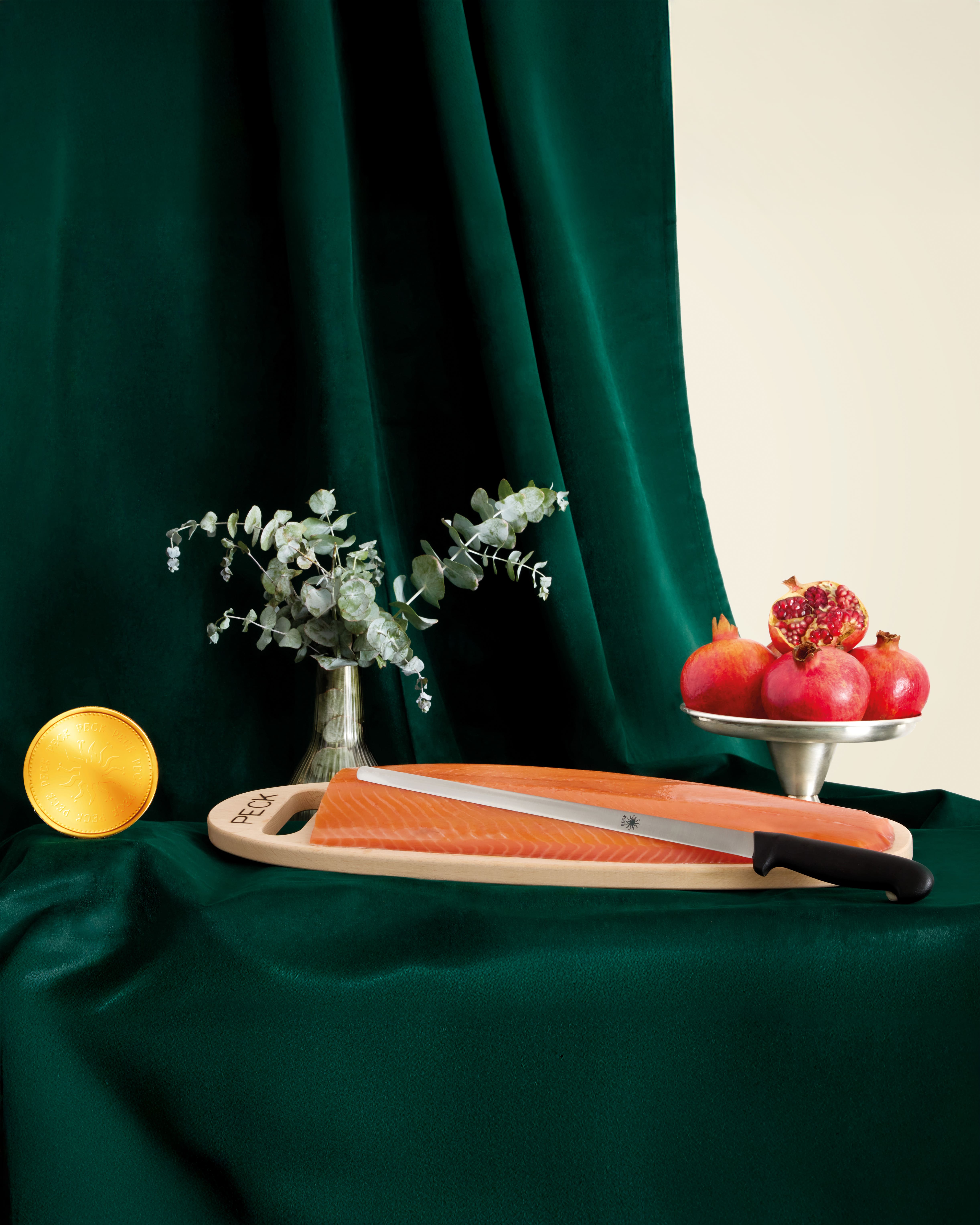 SALMONE AFFUMICATO ALLEVATO ORCADI ASSE E COLTELLO